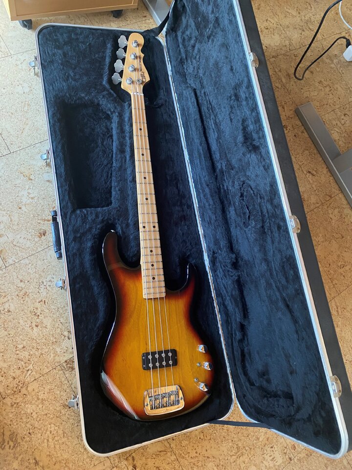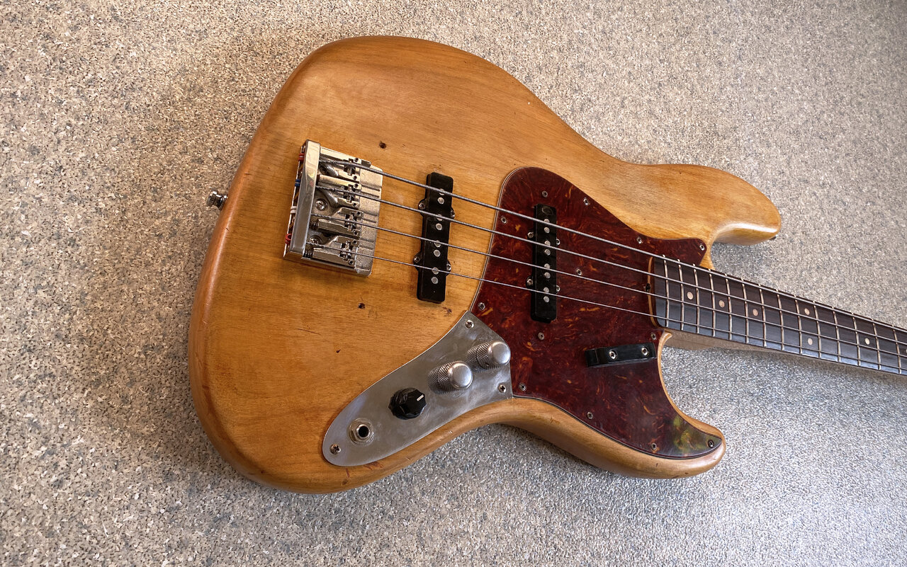 Den Body habe ich schon einige Jahre und da er nie wirklich dick lackiert war, sondern nur eine dünne Lasur hatte, hat er viele echte Macken über die Jahre bekommen. Dann hab ich vor zwei Jahren oder so einen Vintera Hals ergattern können, dessen PF Board ich dunkler gemacht habe und den an den Body geschraubt. Dann alles etwas honigfarben mit Nitro übergeduscht (auch über die Macken) nur um ihn etwas zu tinten, dann eine Schaller 3D drauf, ein Montreux PG, andere Poti-Knöppe und das wars...