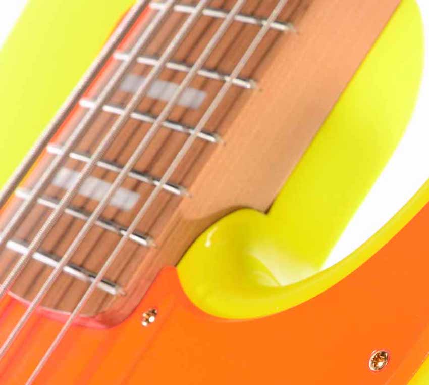 Du meinst wie beispielsweise bei DeGier.Könnte auch sein, dass die Frets mit der sogenannten „invisible“ Technik eingesetzt wurden. Dabei bleibt meine Wissens zwischen Bund und Griffbrett Rand noch Holz stehen. Die Schlitze werden entsprechend von oben gefräst…