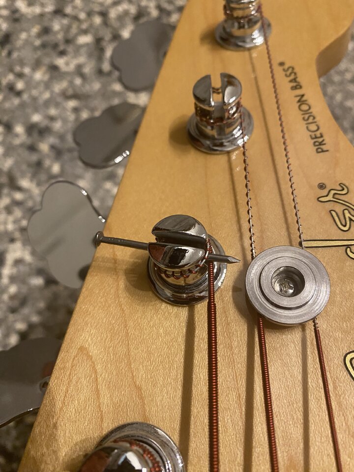 Mal was anderes: hier mein Lifehack, wenn man mal wieder die a-Saite zu kurz angeschnitten hat und der Winkel zum Sattel nicht passt: