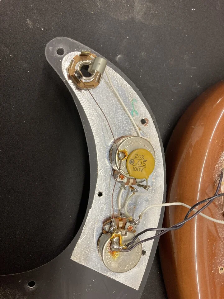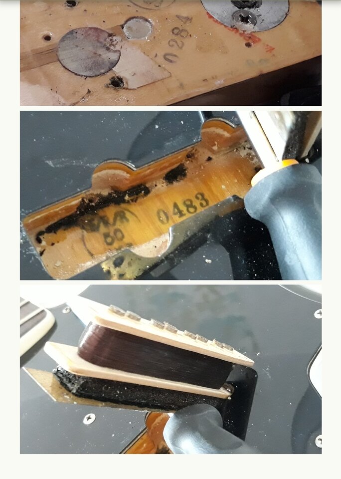 Waren 1977 tatsächlich noch Messingbleche unter dem PU?Alles noch Original. Werde dann mal die PUs durchmessen. Nach Cadfaels „Verdrahtungsbibel“ ist auch alles korrekt.