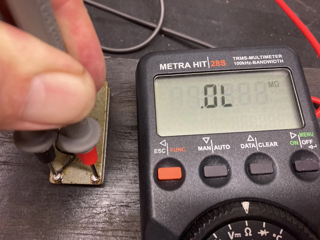 Also die Outputwerte sind zu niedrig, meine passiven Bässe bringen alle um 200 mV mindestens, wenn ich volle Kanne anschlage. Miss mal die beiden Pickupteile separat mit einem Multimeter im ohmschen Messbereich durch. (Ablöten mindestens einer Seite!) Du müsstest etwa 9 bis 10 kOhm zwischen den beiden Anschlüssen des Gesamtpickups sehen und etwa 5 kOhm für jeden Teil einzeln. Das hat zwar nicht so viel mit der Realität zu tun, weil das Riesen-Induktivitäten sind, aber wenn Du die nicht siehst, dann weißt Du schon, dass da was am Pickup n.i.O. Ist. Vielleicht ist irgendwo ein Draht ab oder fast ab.Ich benötige mal unsere Schwarmintelligenz.