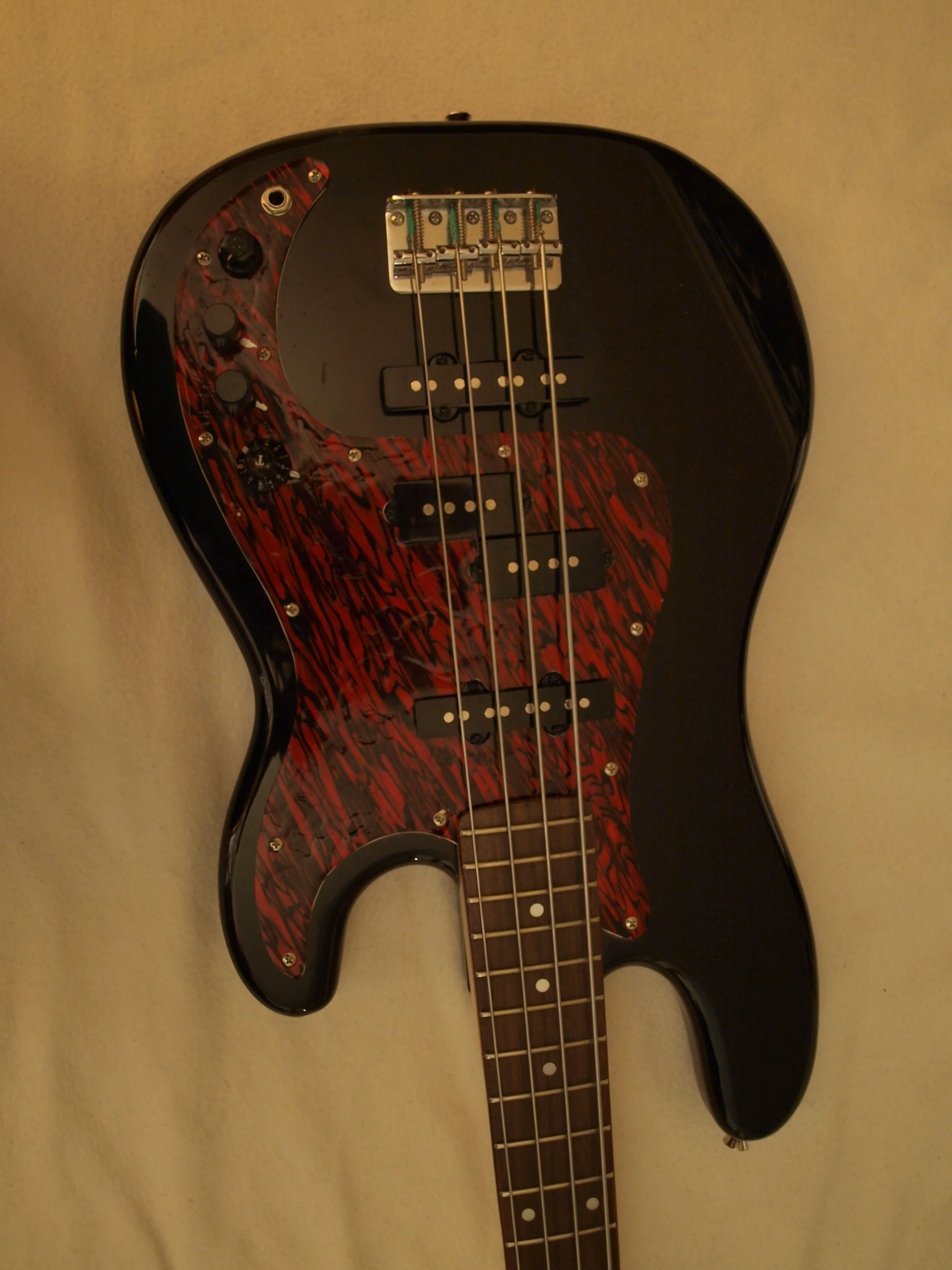 2)1978 : 65er Preci (Rosewood) super diletantisch (schwarz) lackiert mit nem ganz bösen (mit übler Spachtelmasse ausgefülltem) Loch vorm Hals (da war mal n