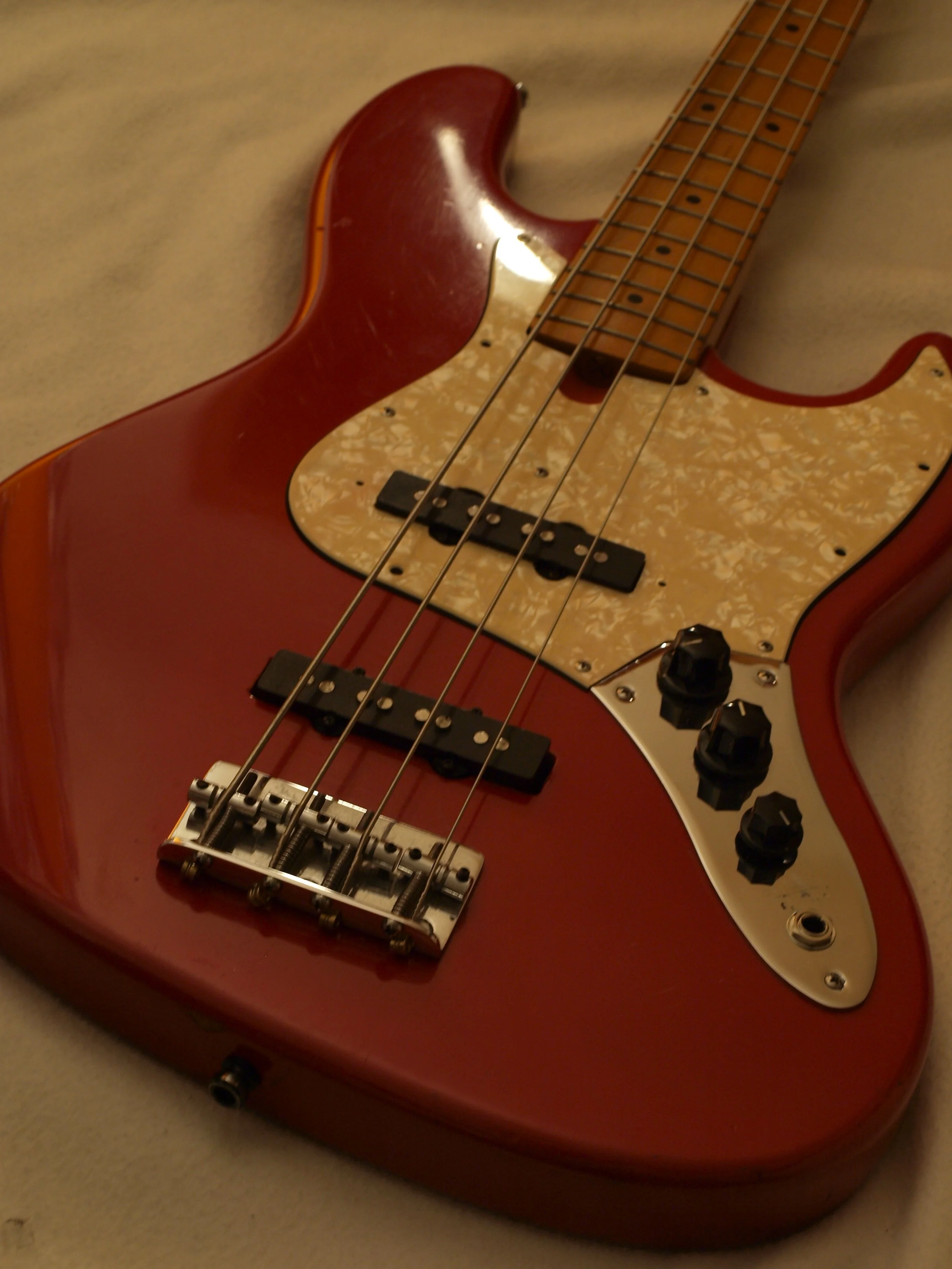 6) (ca 1990) endlich der erste pre CBS Jazzbass !!! (64er oder 65er - unprofessionell - aber ganz charmant - in Orange (!!) lackiert) - viele sehr ansprechende Aspekte - aber irgend etwas (von der fehlenden Saite mal abgesehen) fehlte - nach nem guten Jahr wieder verkauft !