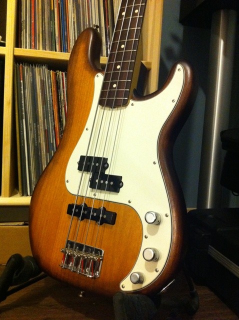 Der PU klingt sehr offen - "zarter" als n Slipcoil Preci - errinnert mehr an den ersten Singlecoil Preci. Das Tonepoti macht witziger Weise gar nicht so dumpf wie ich das von J und P Bässen kenne - macht ne schöne Mittennase die den Holzton noch mal unterstützt.