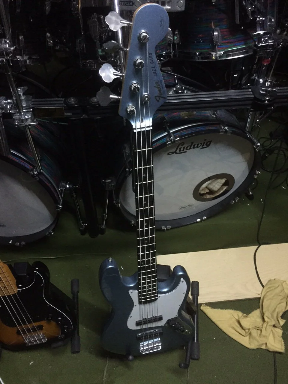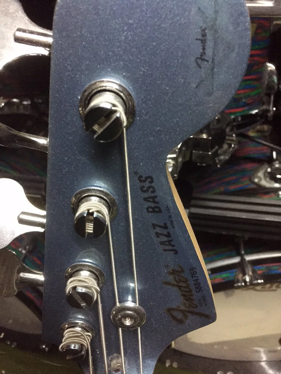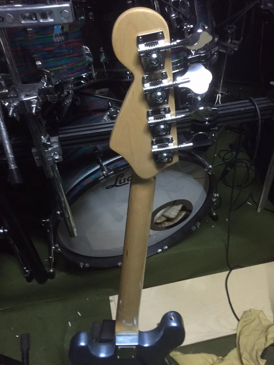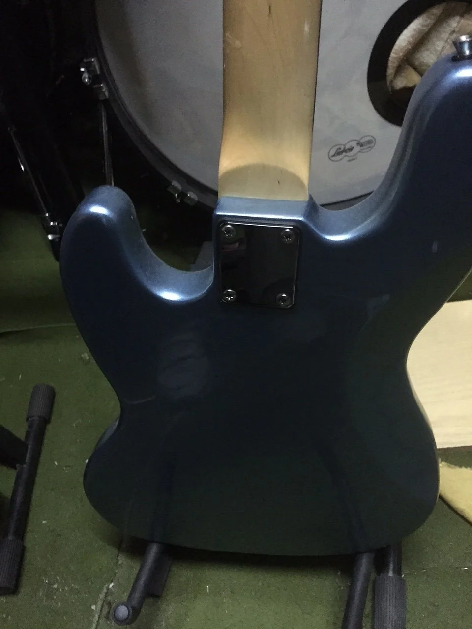 Das zweite wäre ein Jazz Bass mit S8xxxxx Seriennummer, scheint aber auch schon ein komischer Headstock (soll da noch ein Custom Shoplogo drauf sein?) und hinten 4fach verschraubt, wobei ich das auch schon gesehen habe.