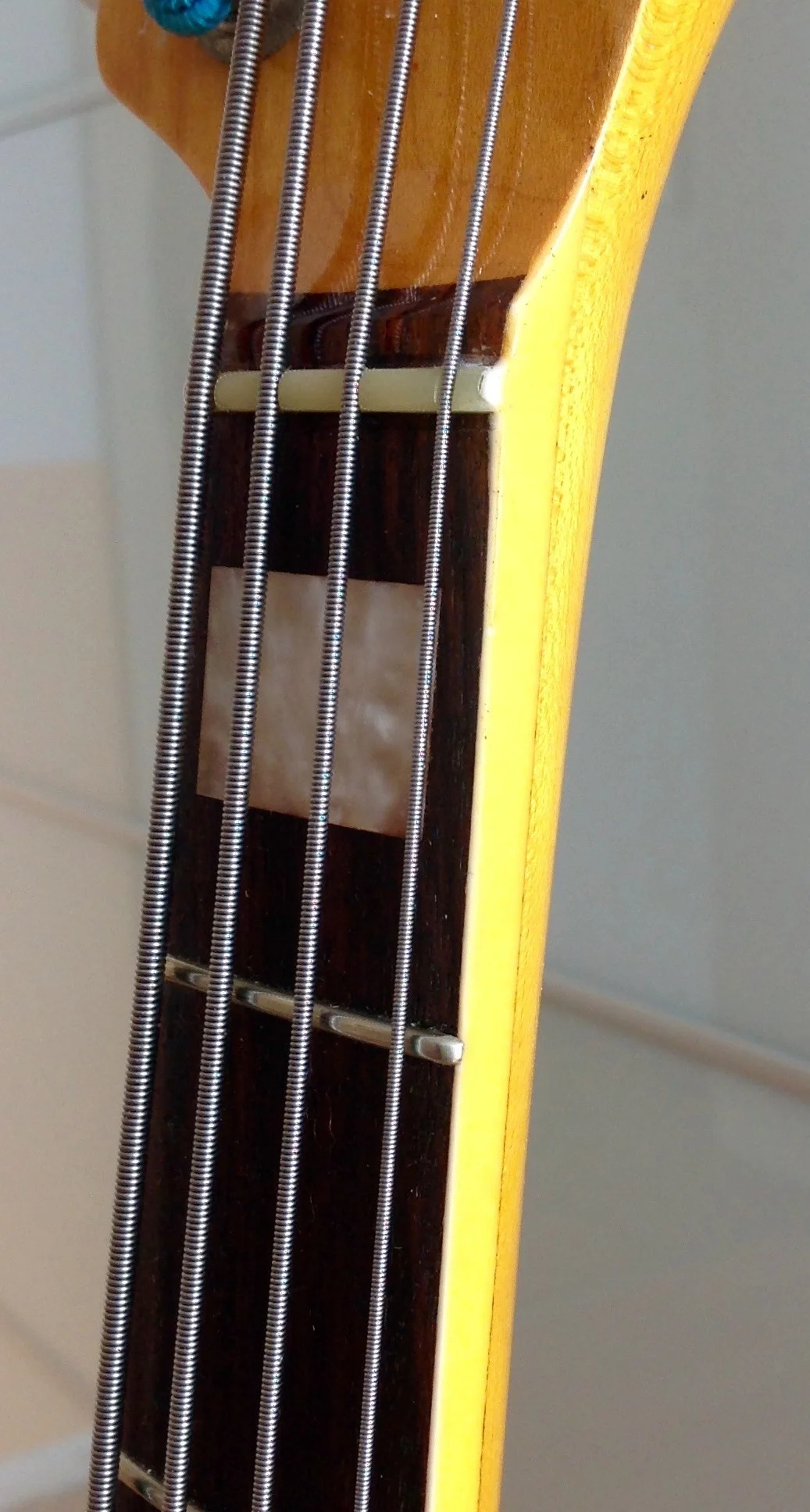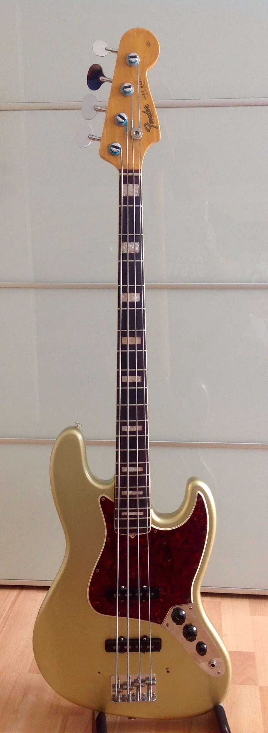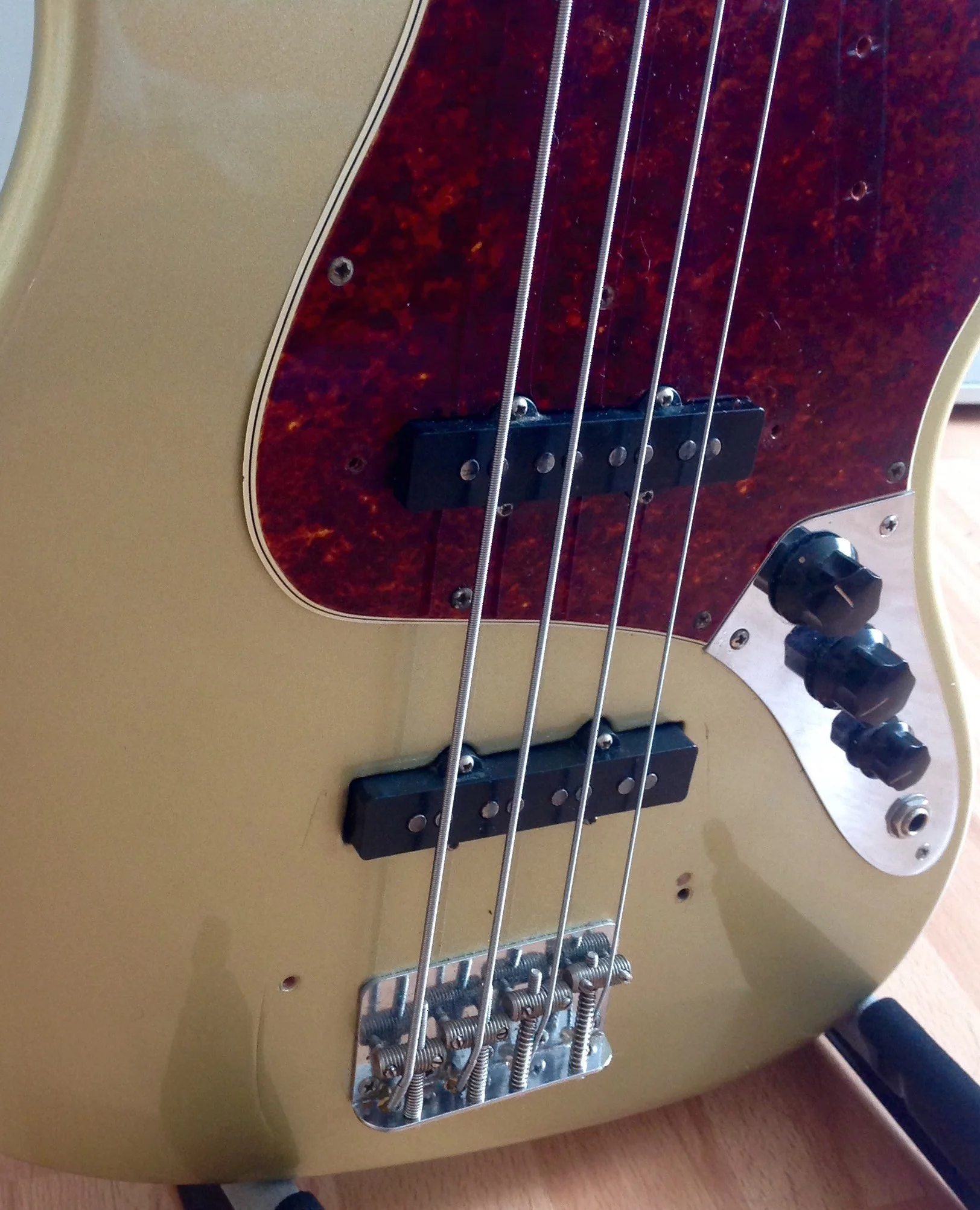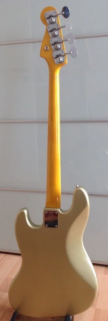 Wie gesagt... Body und Neck vor sieben Jahren refinished (Body in Nitro, Shoreline Gold, Original war Fiesta Red...), Refretted vor ein paar Monaten durch Andi Kristall (guter Job!).
