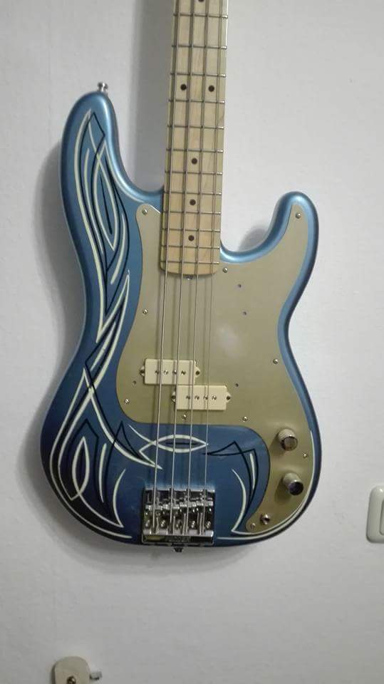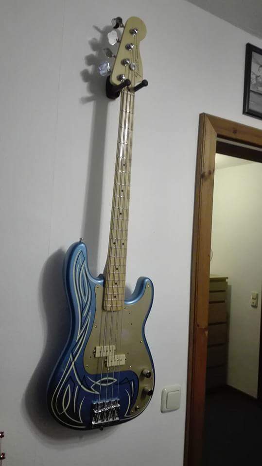 wasn dasn für einer? Sieht aus wie ein Classic 50ies aber bau. oder hast Du den ummalen lassen (außer den pinstripes)?Musste das pickguard etwas bearbeiten damit der schaller pbx rein passt. Ich find's geil