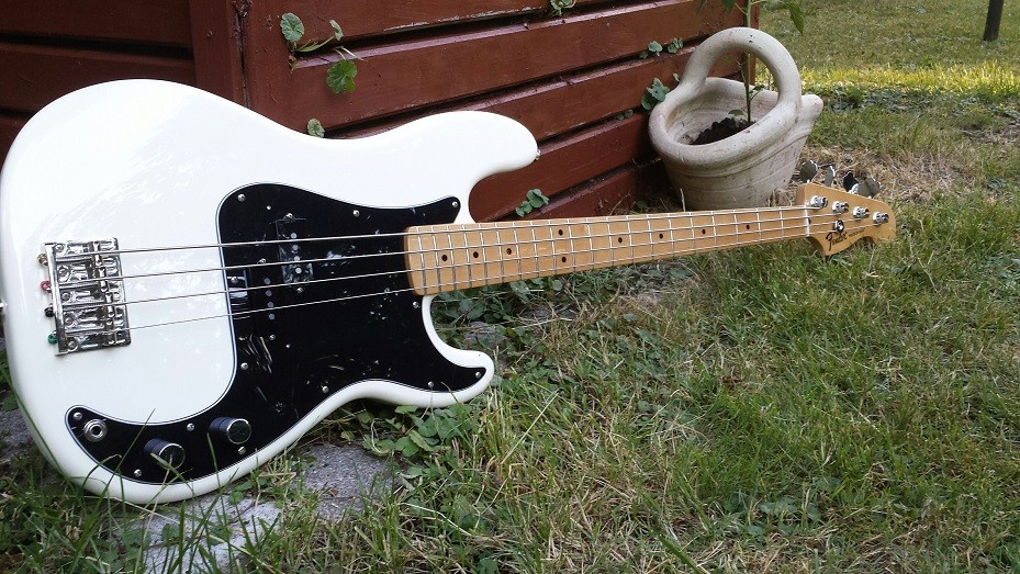 Ganz ohne Prezi hab' ich's dann doch nicht ausgehalten... ein 2015er Mexikaner in Arctic-White mit CS 62-Pickups (von einem sehr netten Bassicer erstanden) ... wie findet Ihr mein Dee Dee Ramone-Modell?