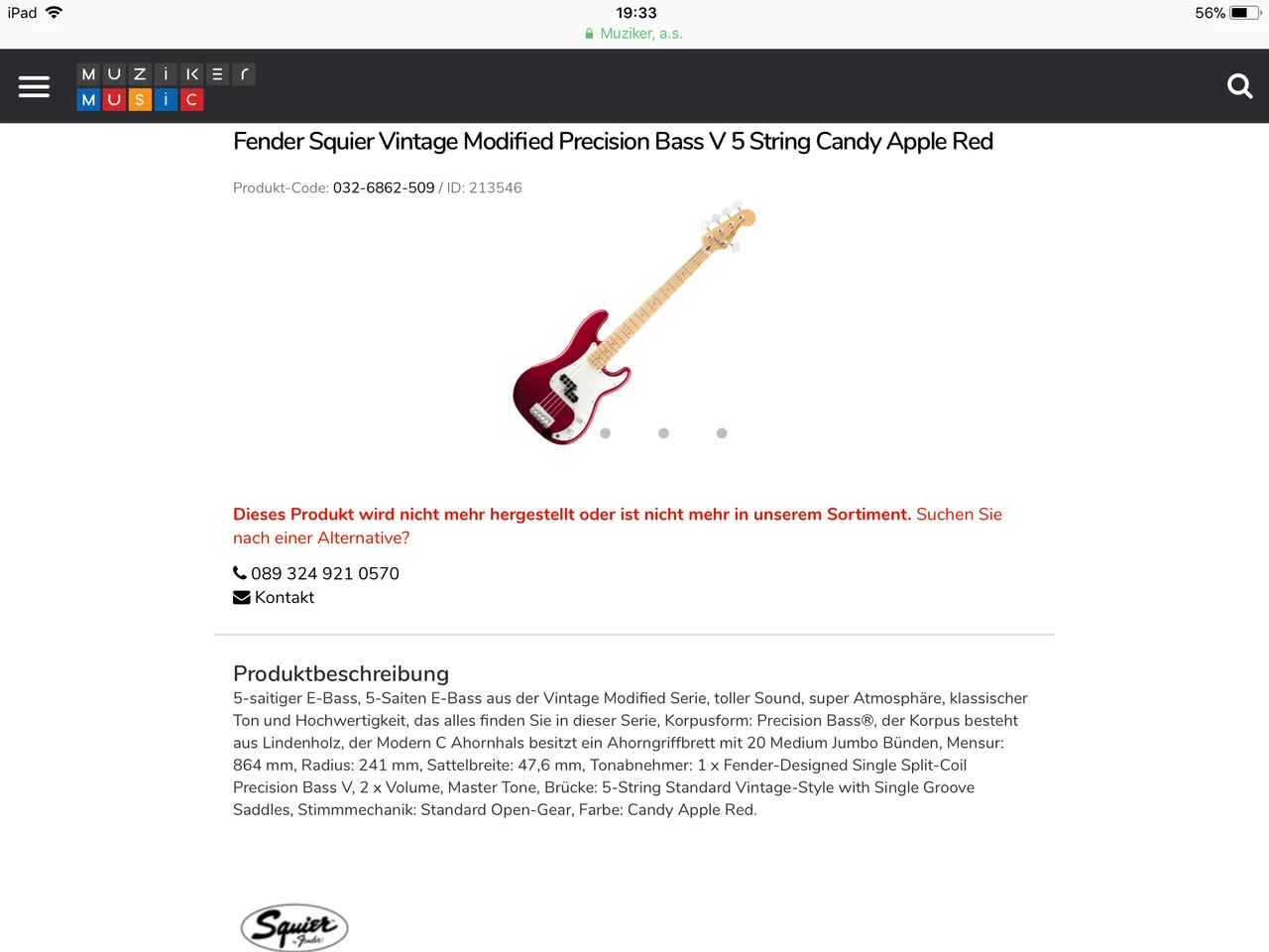 Fender Squier Vintage Modified Precision Bass V 5 String Candy Apple Red gestossen. Hat den jemand von euch? Mir gefällt er sehr gut, helles Griffbrett, H-Saite, kein PJ... leider scheint der Bass aber nicht mehr hergestellt zu werden. Ich hab ihn nur bei einem Musikhaus in Basel noch als lieferbar gesehen (und bei einem Store in den USA, was ja auch nicht gerade um die Ecke ist). Hat jemand vielleicht eine Idee, welches Geschäft noch so einen haben könnte? Ich weiss, die Chance ist klein, aber fragen kostet ja nichts