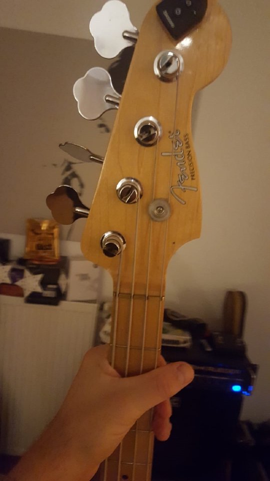 Zwar "nur" ein ziemlich ranziger Roger Waters (2011er Jahrgang), aber der (Prügel)Hals gefällt mir super und klingen tut er auch. Sogar der SPB-3 stört mich jetzt nicht großartig. Ein Model-P sollte die Sache aber künftig noch abrunden. Der Messingsattel gefällt mir sehr gut! Die Mechaniken ebenfalls.