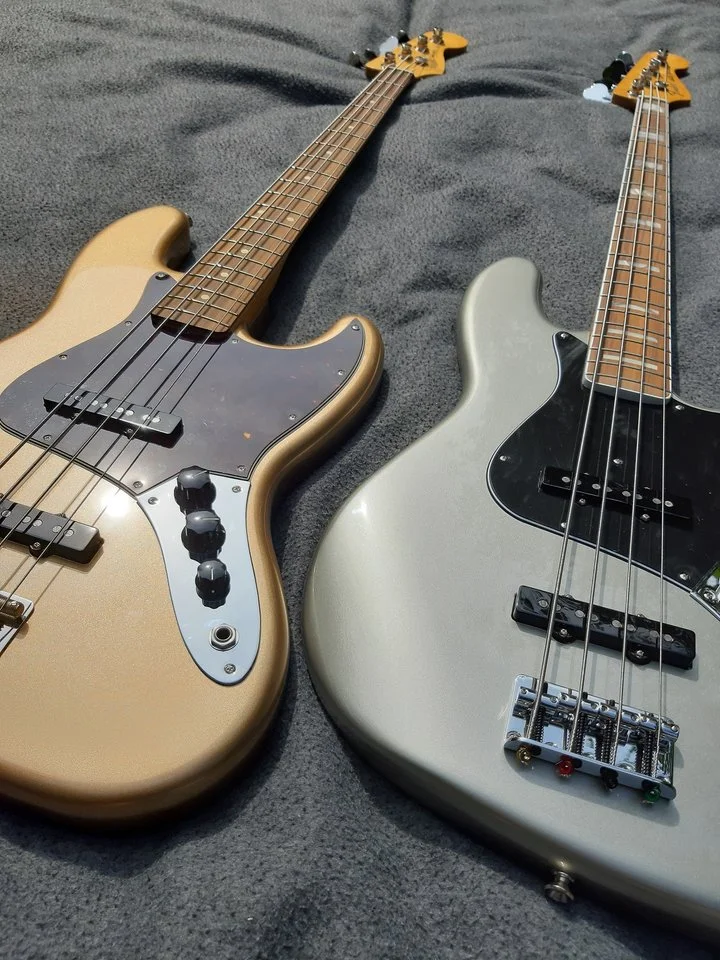 Als erstes habe ich natürlich das Pickup-Spacing überprüft: alles klar, 60s-Abstand passt... und im direkten Vergleich mit dem silbernen 70s-Vintera-JB hört man jetzt schon einen deutlichen Unterschied: der Goldene hört sich sehr erdig und wuchtig an - irgendwie so, wie man sich 60s-Bass-Sound vorstellt … die PUs hören sich in meinen Ohren etwas rauer an, als was ich sonst bislang an Fender-Tonabnehmern gehört habe …