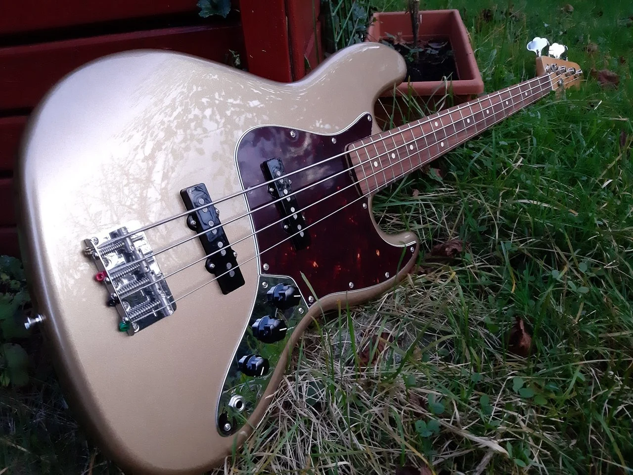 Wie gesagt, hatte Fender den Umtausch bewilligt, Session aber keinen Ersatzbass vorrätig, folglich gab's eine Gutschrift …. fündig geworden bin ich dann schnell bei meinen alten Freunden vom BTM-Guitars in Nürnberg (toller Laden!) ... heute kam der neue goldene JB an(siehe Foto)