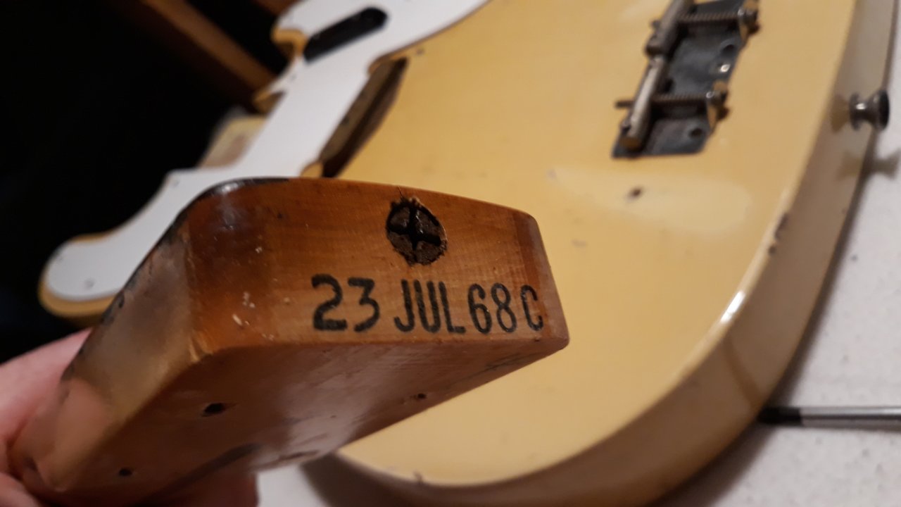 So stark geflammte Ahornhälse sind typisch für das Baujahr '68. Ich hab jetzt schon mehrere Precis mit so wilden Hälsen gesehen, das waren alles 68er. Mein Lake Placid "Green" P-Bass gehört leider nicht dazu...Ich war mir vorher gar nicht so sicher ob man die Flammung auf dem Griffbrett nach dem Polieren sehen würde