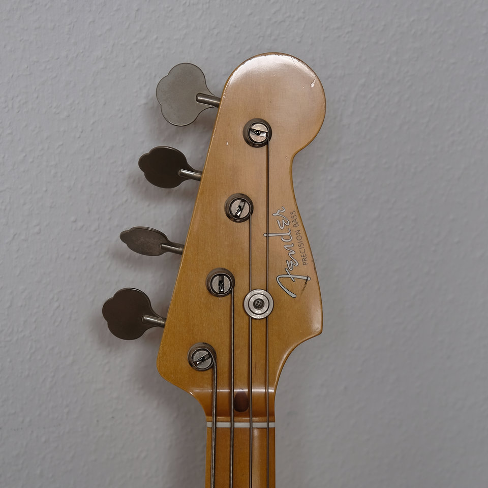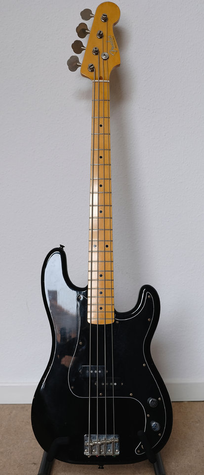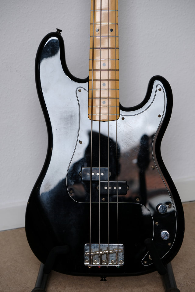 Der Bass wurde mir vom damaligen Bassicer Maurice vermittelt und kam bereits leicht abgerockt zu mir. Er liefert genau den Klang, den ich von einen Preci erwarte: Trocken, knackig, einfach Rock. Leichte Zerre dazu, Plek und gib ihm. Die Hardware ist bereits gut angelaufen, der Lack hat viele Kratzer und Macken. Ich liebe es! Zur Zeit fristet er leider ein Zuhause-Dasein, da ich in meiner aktuellen Band einen 5-Saiter brauche. Aber ich werde mich wohl bald mal auf die Suche nach einer zusätzlichen Rock-Band oder ähnlichem machen, wo ich ihn einsetzen kann. Denn nur für Zuhause ist er wirklich zu Schade. Er würde perfekt in eine QOTSA-Coverband passen.