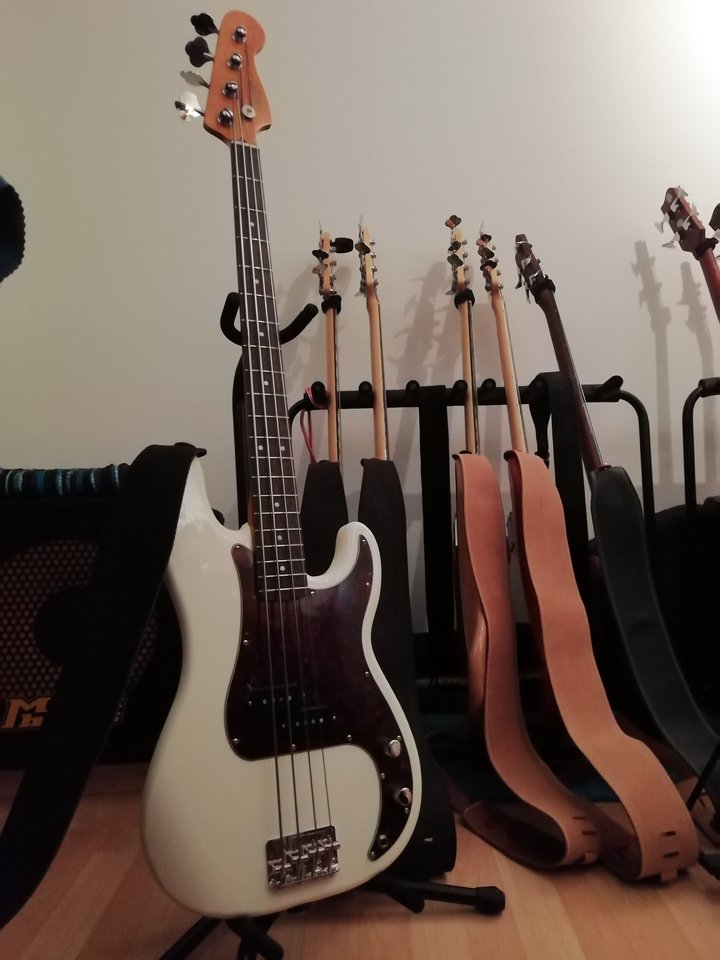Squier CV 60s Precision bei mir eingezogen. Ich habe ihn eigentlich mehr als Referenz in den Testraum mitgenommen, aber die Referenz hat alles andere geschlagen