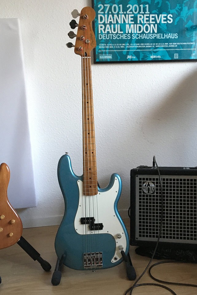 Heute Eingezogen. Ein American professionell Jazz Bass. 3,9 KG, perfekt gestimmt, geprüft und eingestellt. So eine Anlieferung habe ich bisher noch nicht erlebt.