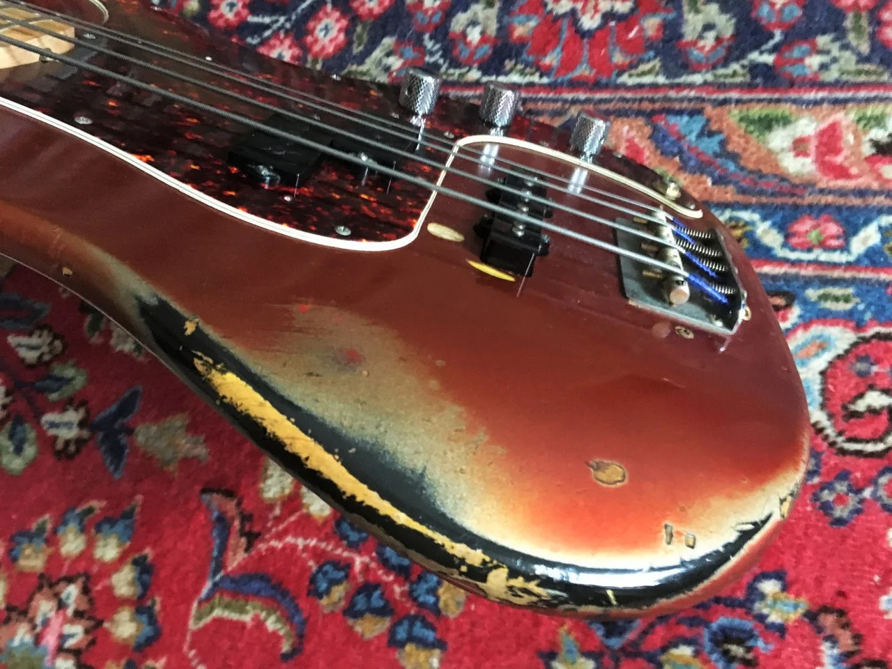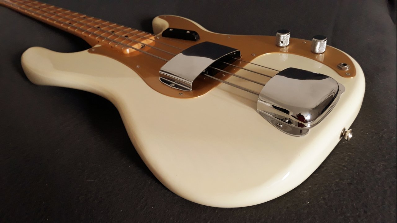 Hatte noch einen loaded 66er Preci Body in Liebesapfel Rot ĂŒber Sunburst mit Jazz Pickup rumliegen & einen 51er Precision Neck (MN).