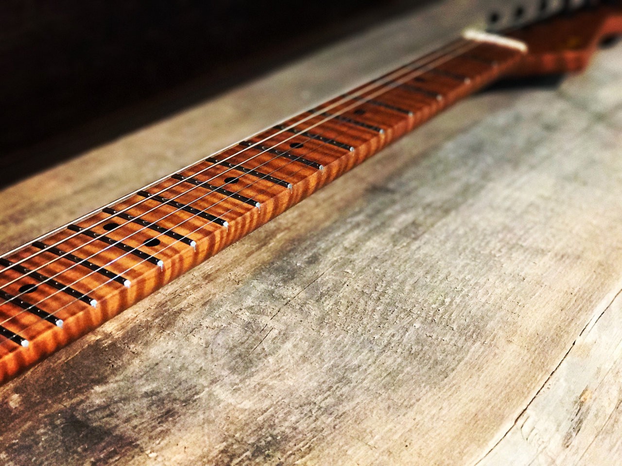 also der Hals ist ja der Wahn, das hab ich auch noch nicht gesehen, ich dachte, die roasted maple sind immer einteilig. Ist der vielleicht nur nachgefärbt mit Lack und Beize? Sind das Katalogbilder? Den Hals würd ich gerne mal auf einem ocean green/blue Body sehen. Mir gefallen auch die gelblich gefärbten dots. PG in mint oder cream.