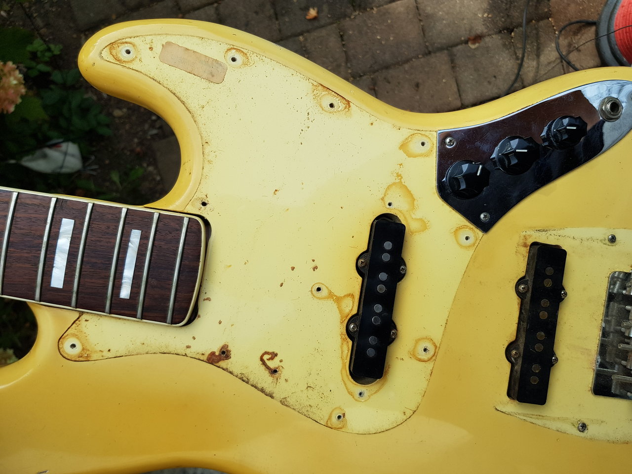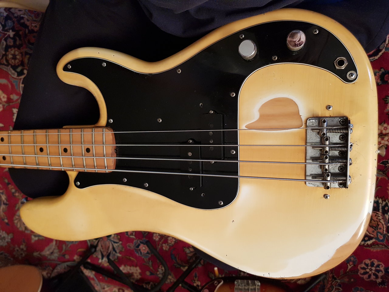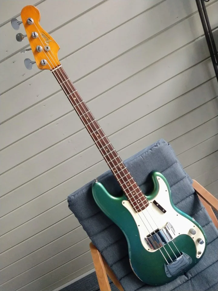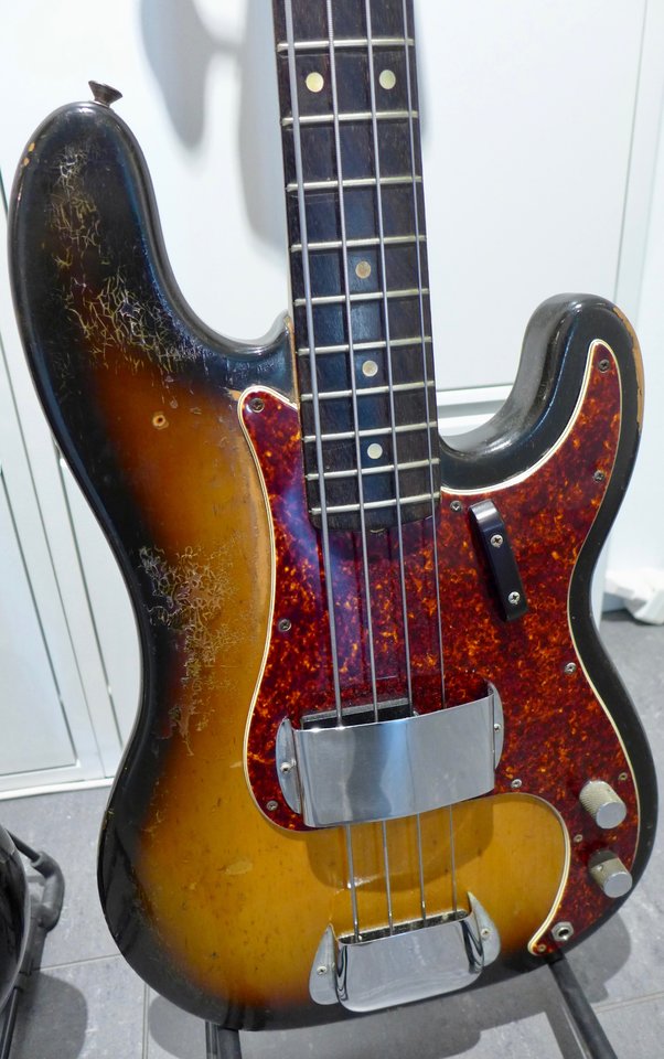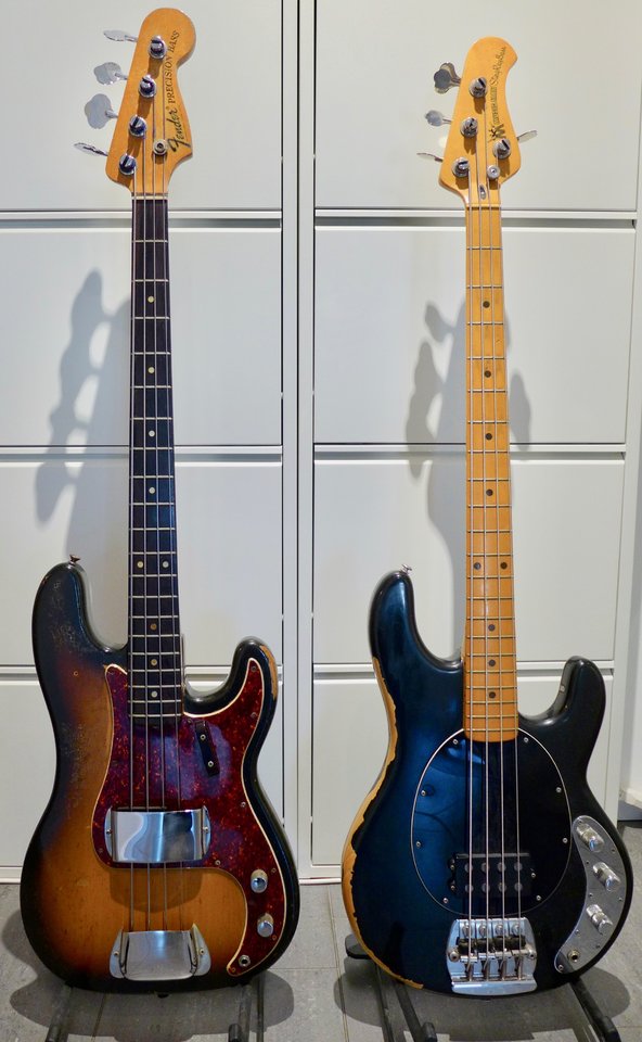 Schön wenn man die Geschichte seiner Bässe kennt.Geht mir auch so: PB 1968 spielte jahrelang in einer Strand-Combo in Marokko an der prallen Sonne, MM 1974 spielte jahrelang in einer Reggae-Band mit viel Schweissder Lack ist nur noch matt und fällt von alleine ab...