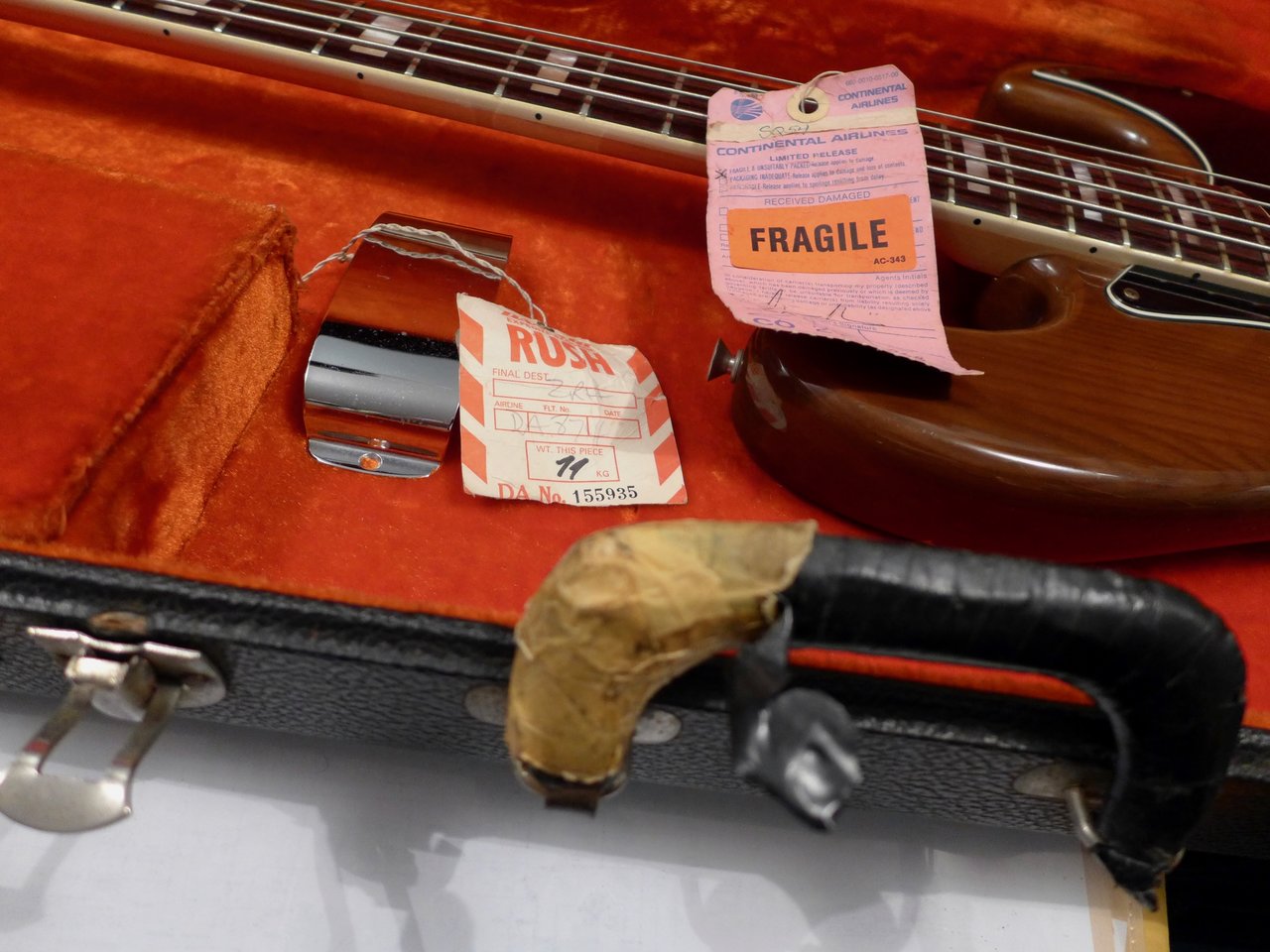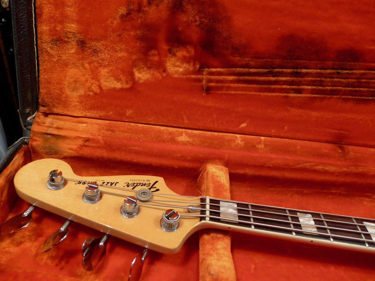 tja, viel mehr gibt’s eigentlich nicht zum schauen; einige kleine gebrauchtspuren, aber sonst alles original (auch beide chrome sind vorhanden, der koffer ist arg ver-/gebraucht, weil, dieser bass kam per Air aus San Diego, wurde dort lange gespielt, und dann von mir „gefunden“...)Also der braune JB ist WAHNSINN!!!!