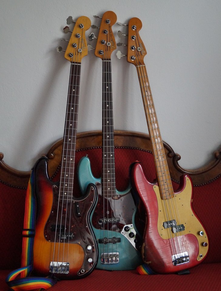 Kein Bild, kein Koffer, kein Gigbag und kein... altsaualtÜberwiegend in Koffern, Gigbags und Ständern.... Wie halt Bässe so wohnen....![]()