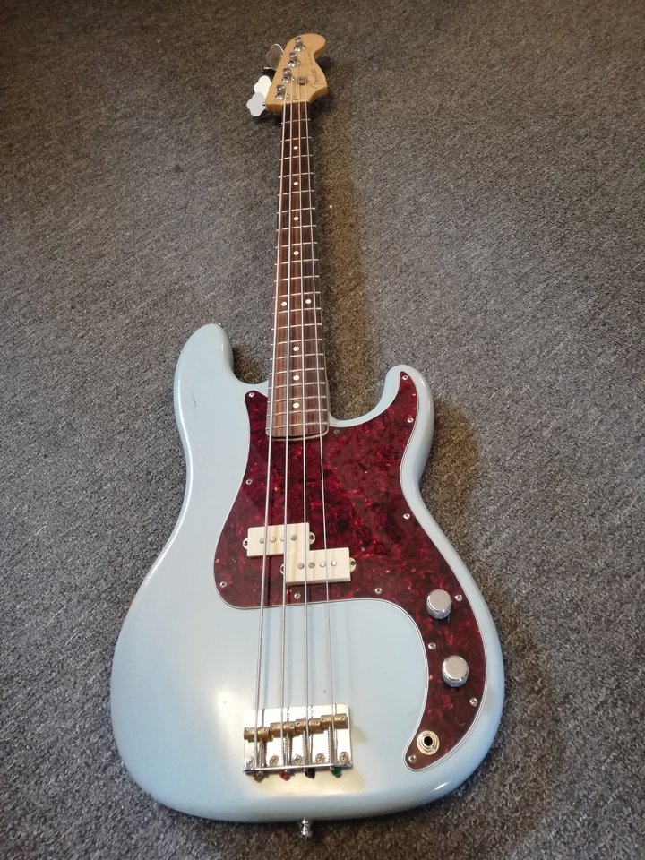 Oder ein 62er Jazz Bass mit Pickguard im Burns Optik.Ein 63er ohne Lack mit marmoriertem Pickguard![]()