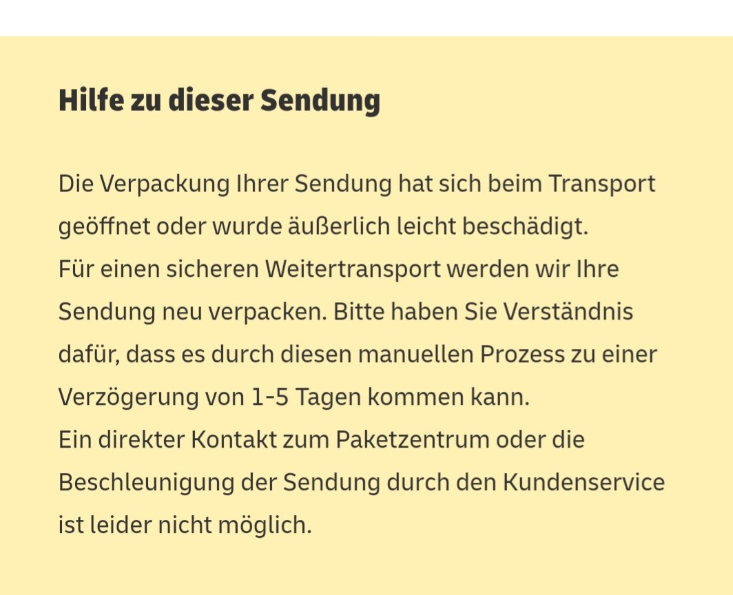 Dann werde ich wohl für das UPD Paket - von dem ich nicht weiß wann es ankommen wird - die Annahme verweigern.