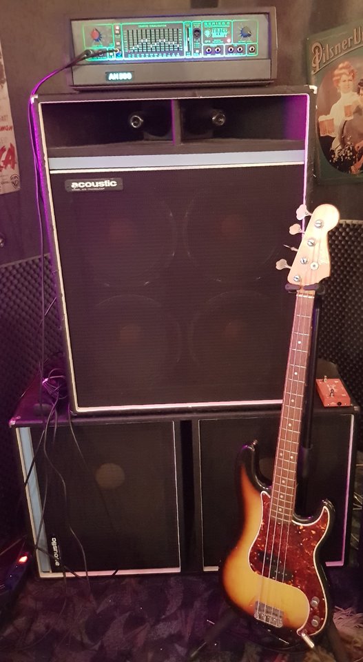 Wenn ich eure Anlagen sehe, bekomme ich Tränen in die Augen! Früher habe ich noch 4*10 mit 1*15" gespielt und heute in meiner Coverband ( die mir einen Riesenspaß macht) bin ich mit meinem Roland Cube 100 schon zu laut![]()