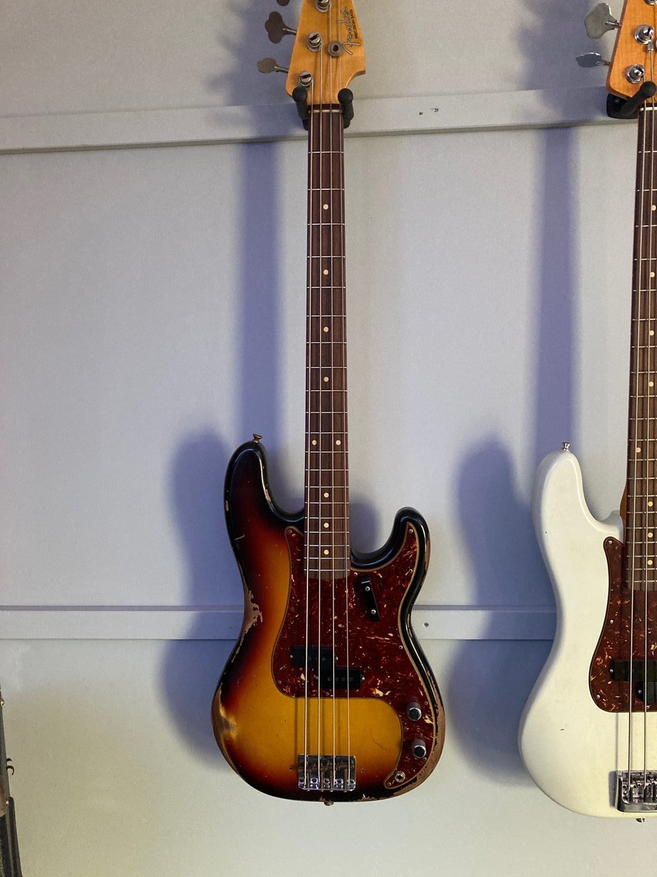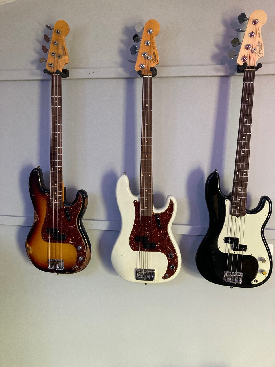 von unten nach oben: 1960 P-Bass Heavy Relic 3TS, Postmodern, American Pro
