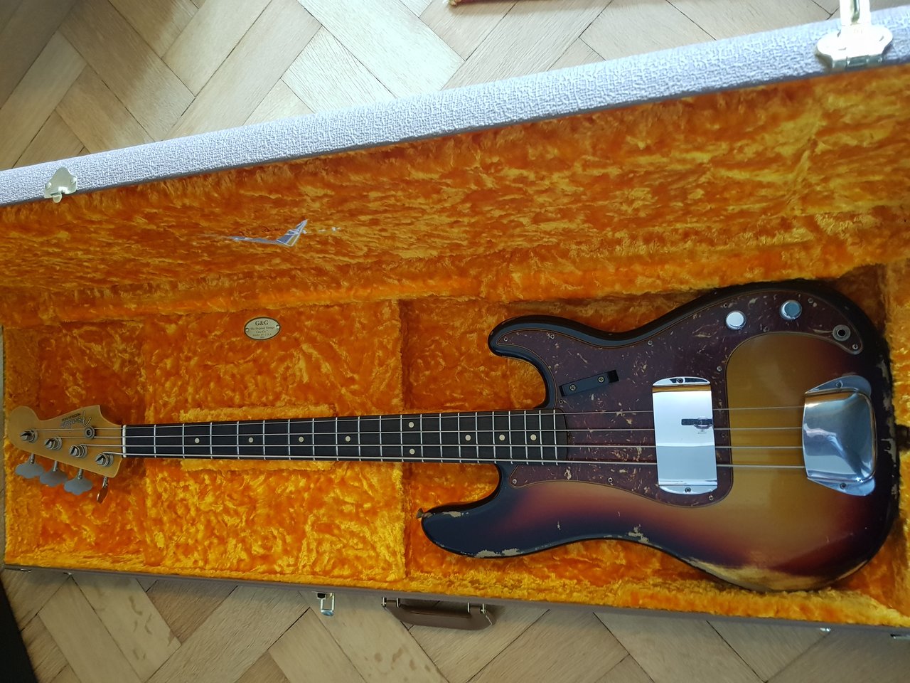 von unten nach oben: 1960 P-Bass Heavy Relic 3TS, Postmodern, American Pro