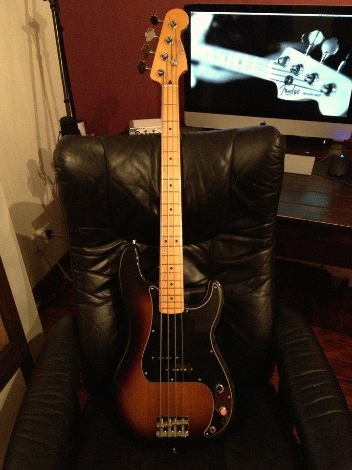 Er hat einen interessanten P Bass...
