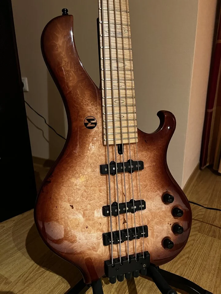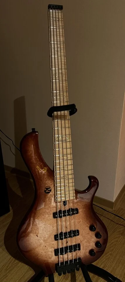 Was ich aber meinte: durch das Verlängern der Aufhängung des oberen Horns wandert der Bass nach rechts. Und dann stört halt die Wampe beim Erreichen der hohen Lagen - die man bei "normalem" "gefuddelfreien" Bassspiel jedoch nicht benötigt.