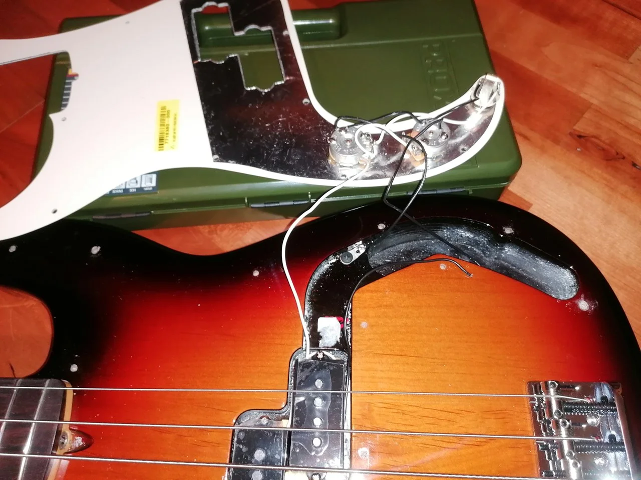 Hab bei meinem neuen Preci den Pickguard abgeschraubt (um besser an die Trussrod Schraube zu kommen)