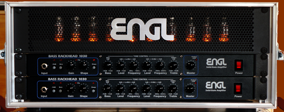 Mein Engl-Amp ist ein Unikat, von Edmund Engl noch persönlich designter und handgebauter Vollröhren Amp, die einzige Bass-Vollröhre, die Engl je gebaut hat. Echter 2-Kanaler, ausgefuchstes Schaltungsdesign, mit dem unterschiedlichste Sounds realisierbar sind. Liefert für eine Vollröhre unglaubliche fätte 1000 Watt an 8 Ohm und kann mit seiner brachialen Leistung fast jede Box zerstören. Bin da durch Zufall und mit viel Verhandlungsgeschick drangekommen. Wiegt allerdings 48kg und ist somit kaum tragbar.