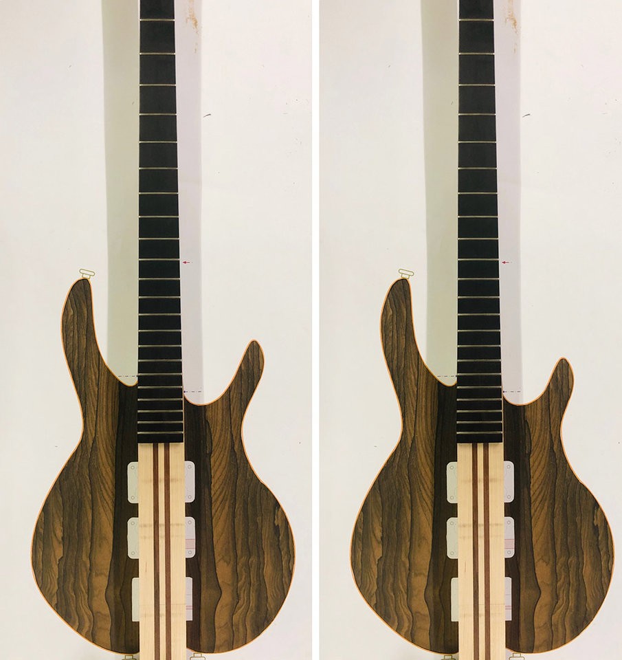 genau wie ich gemeint hab...Hat auch was, muss ich mal wirken lassen. Hier mal die Frontansicht mit dem Schnittbogen über den Holzteilen, damit man die Form mal komplett sieht.