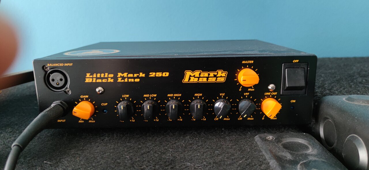 Dazu sind die Klangregler bei Markbass ein wenig "giftig" bzw sehr effektiv, also es passiert viel auf kleinem Regelweg. Da reicht ein 3-4mm nach rechts gedrehter Tiefmittenregler schon, dazu ein 3-4mm nach links gedrehter Höhenregler, dazu eine nicht so knackige Box und schon klingt das verhältnismäßig "dunkel".
