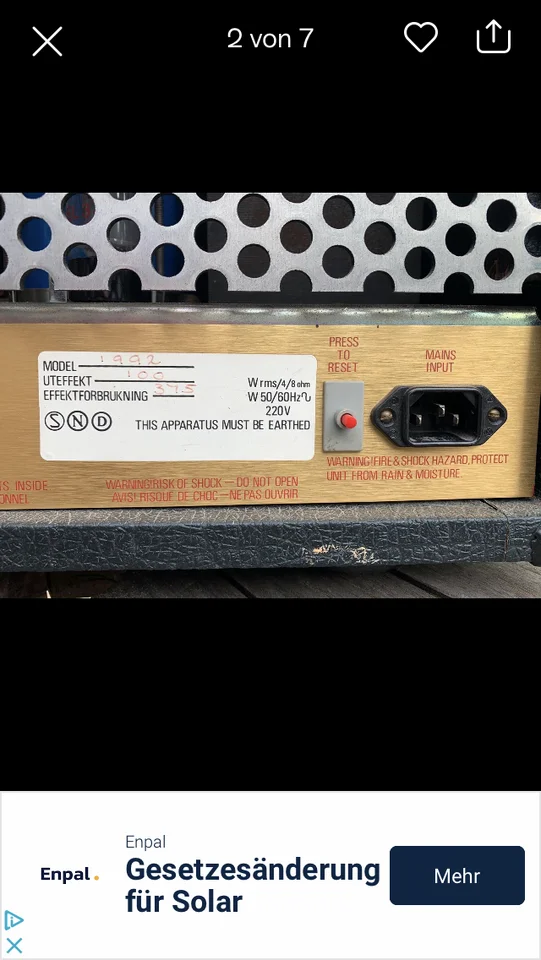 Ein Poti auf der Rückseite, dass die Endstufe entlastet, bzw. die ausgefahrene Endstufe simuliert, uuuund ein Reset-Button, zu dem mir der Verkäufer nichts sagen konnte…
