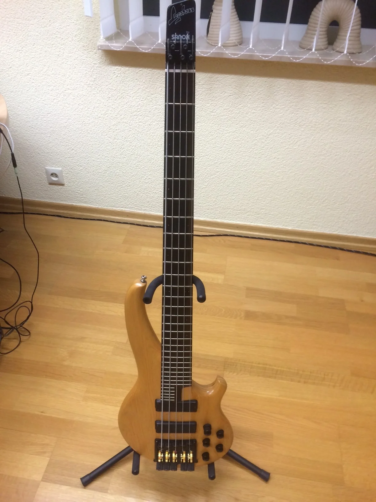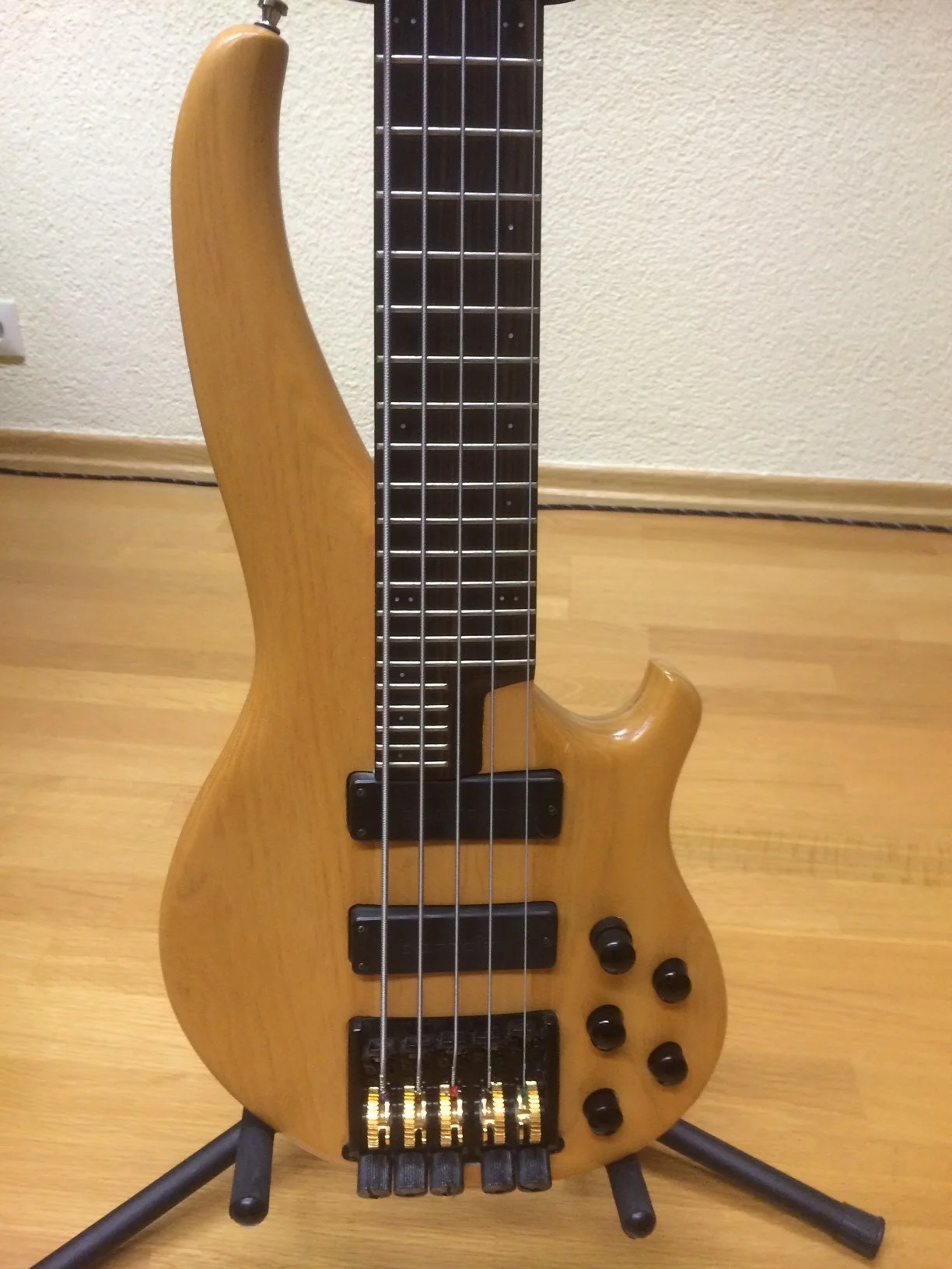 Mein absoluter Lieblingsbass ist Jazzy (im Bild der obere Bass), mein 1984er ESP Series 400, den ich vor vielen Jahren gebraucht gekauft habe. Ich hatte zwischen zwei Terminen noch etwas Zeit und bin einfach in ein Musikgeschäft gegangen. Nur um zu gucken und die Zeit totzuschlagen. Und da standen eine Reihe Jazzys, alles Fenders bis auf eben diesen ESP. Und der hat die Fenders allesamt alt aussehen lassen und mich derart angefixt, dass ich direkt zur Bank bin, Kohle geholt und den Bass mitgenommen habe.