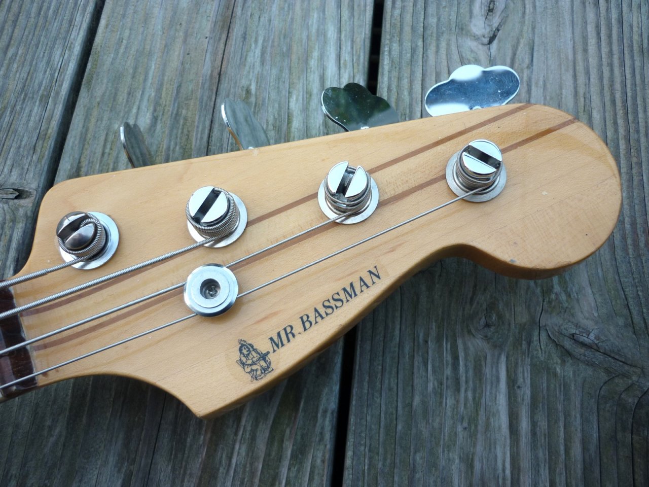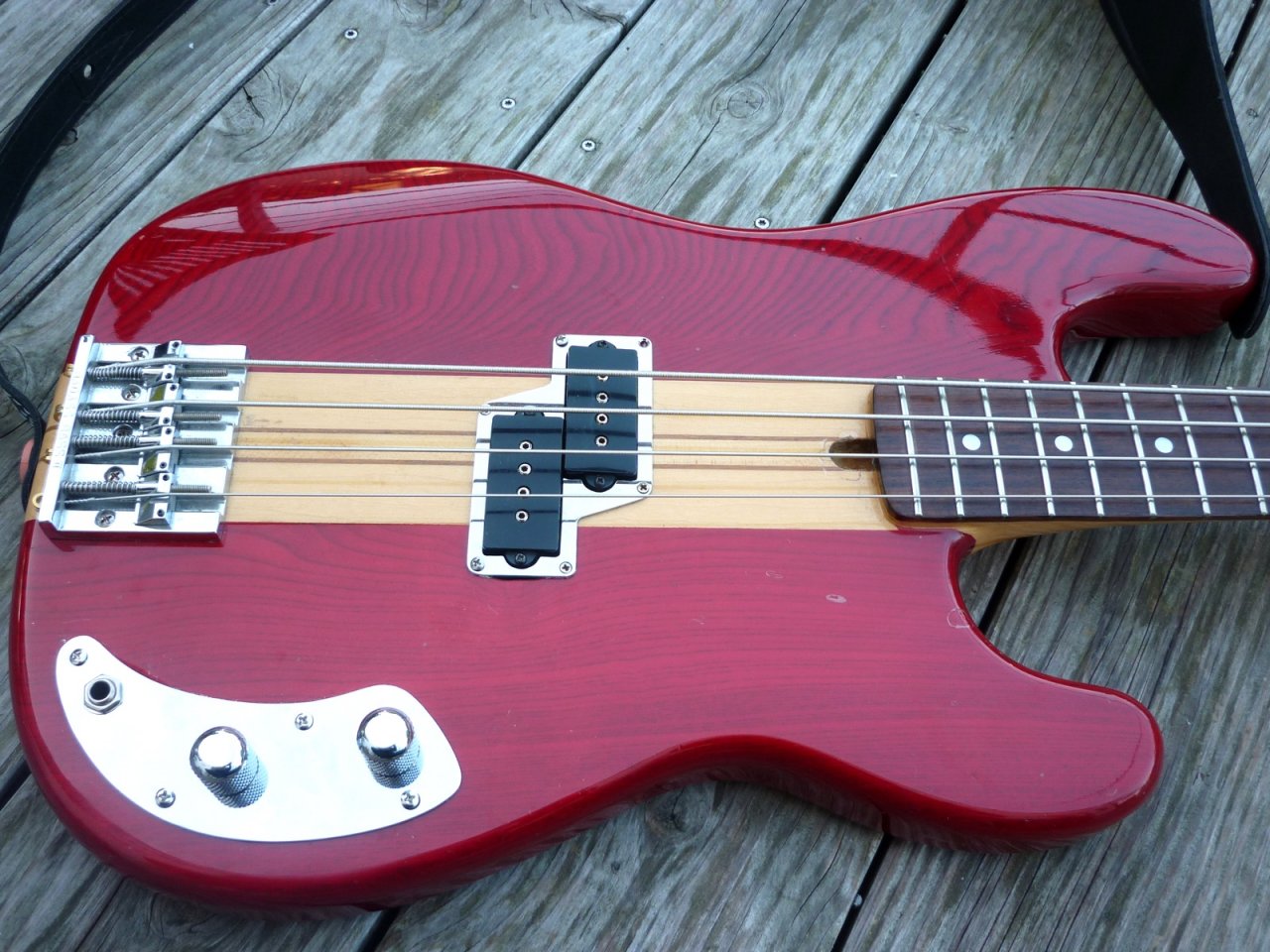 Bert Gerecht (nicht der direkte Vorbesitzer) schrieb mir auf meine Anfrage, dass er diesen Bass als Rohling von der Musikmesse '81 oder '82 mitgebracht hat, wo er ihn irgendwelchen Japanern abgekauft hat und dann fertig aufgebaut mit Badass-Bridge, Quarterpounder und Kluson-Mechaniken (alles in Gold bzw. Messing-Optik).