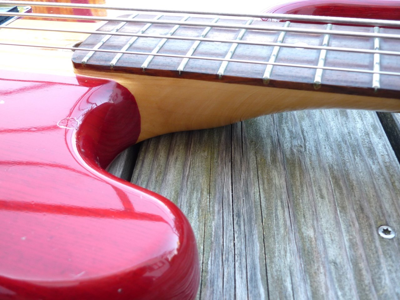 Das Gewicht ist ziemlich ordentlich (massive Esche- bzw. Sen-Korpusteile) und er klingt deutlich nach P-Bass, dabei aber sehr drahtig und "massiv".