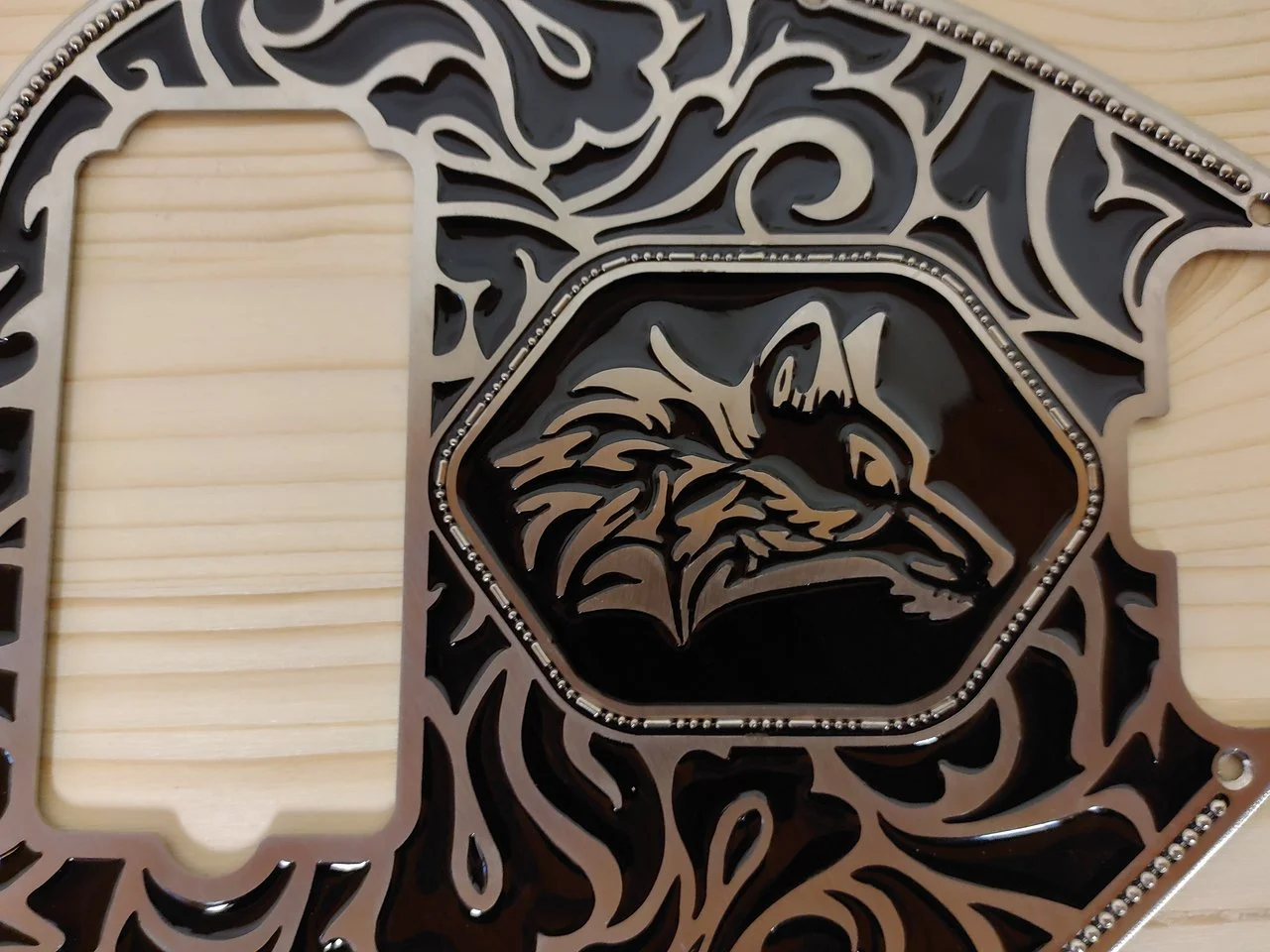 Finde ich schick. Sieht für mich eher nach Fantasy oder Gothic aus, so Game of Thrones oder Herr der Ringe. Ich mag die Form der 5-String Ray-Pickups eigentlich nicht wirklich, aber so passt es sogar.Was sagt Ihr dazu...??