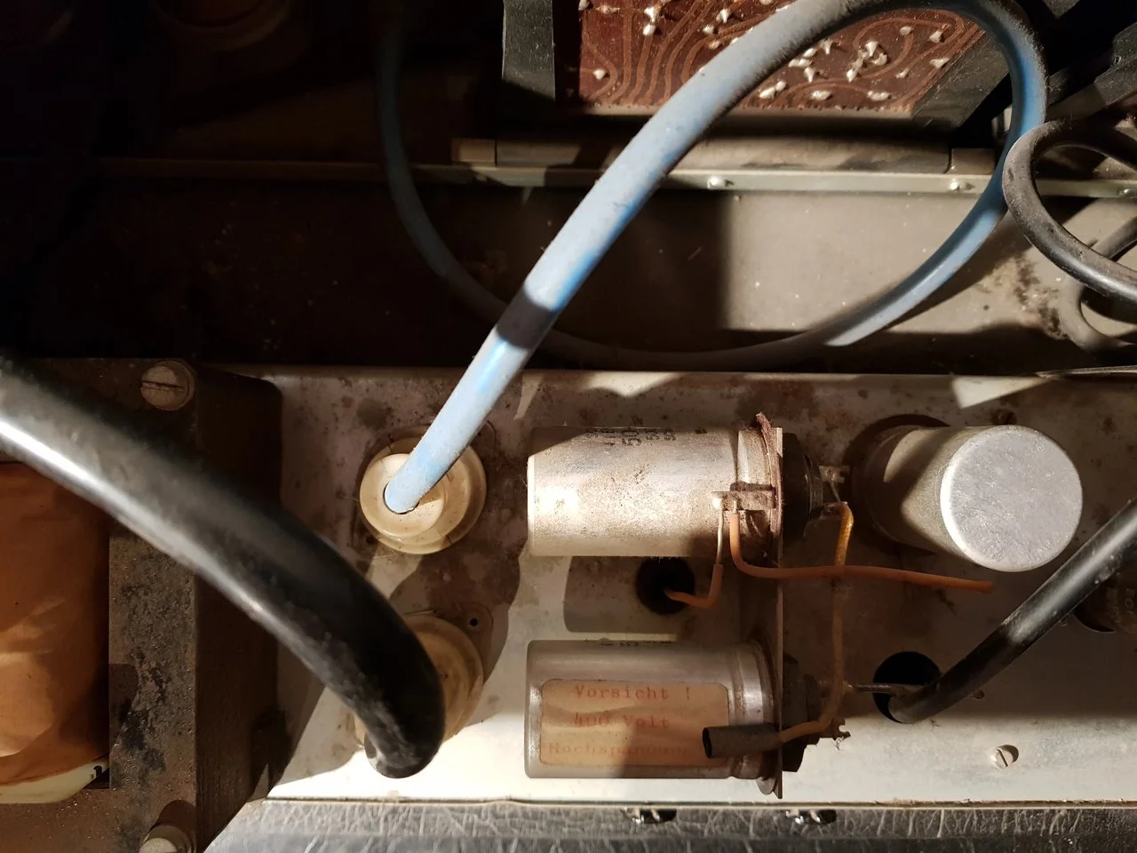 Jedenfalls schau der innen drin aus wie Kraut und Rübe und der Klang is ähnlich. Zerrt, rumpf, brazelt im Klang, also grauslich. Es muß also eine Instandsetzung her.
