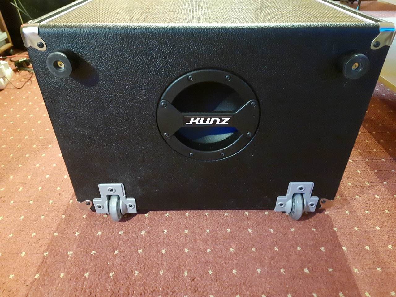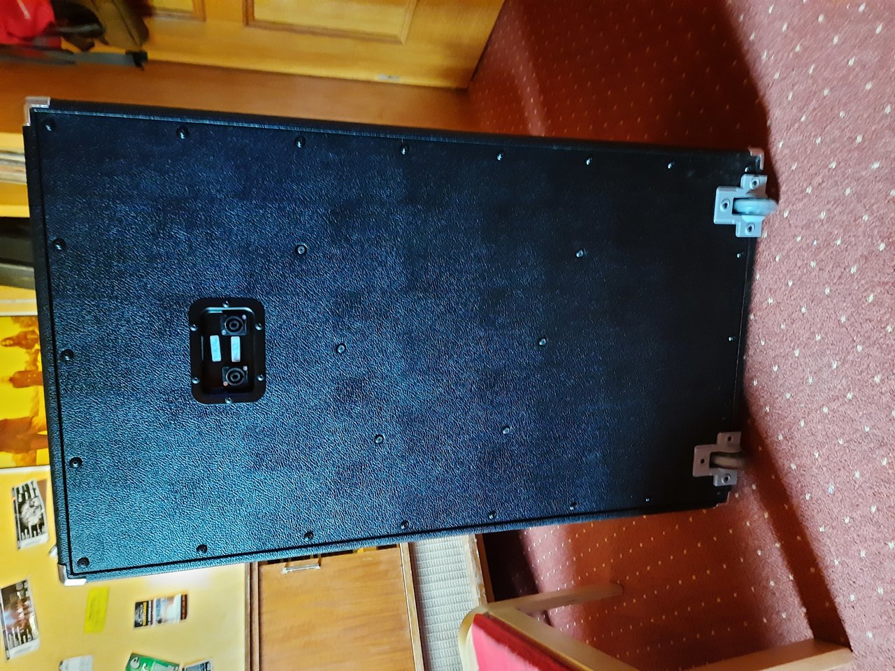 Hinten 2 Speakon Anschlüsse. Insgesamt 1200 Watt. 5,3 Ohm. 3 x Eminence Delta 12B.