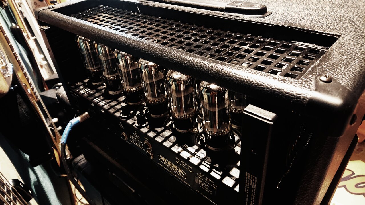 Der Mesa kommt mir echt vor wie ein Bassman auf Steroiden.. Es kann genauso so mild und Vintage muggeln, immer warm und dick mit fast geschlossenener Tonblende und den Preci in den Mix schieben