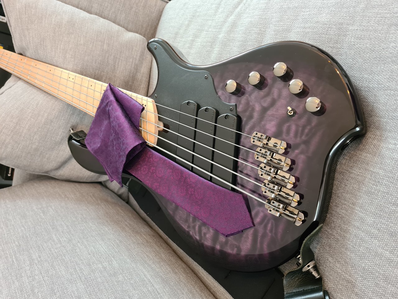 Für den Gig (runder Geburtstag) einfach mal Krawatte und Einstecktuch an den Bass angepasst. Because I can![]()