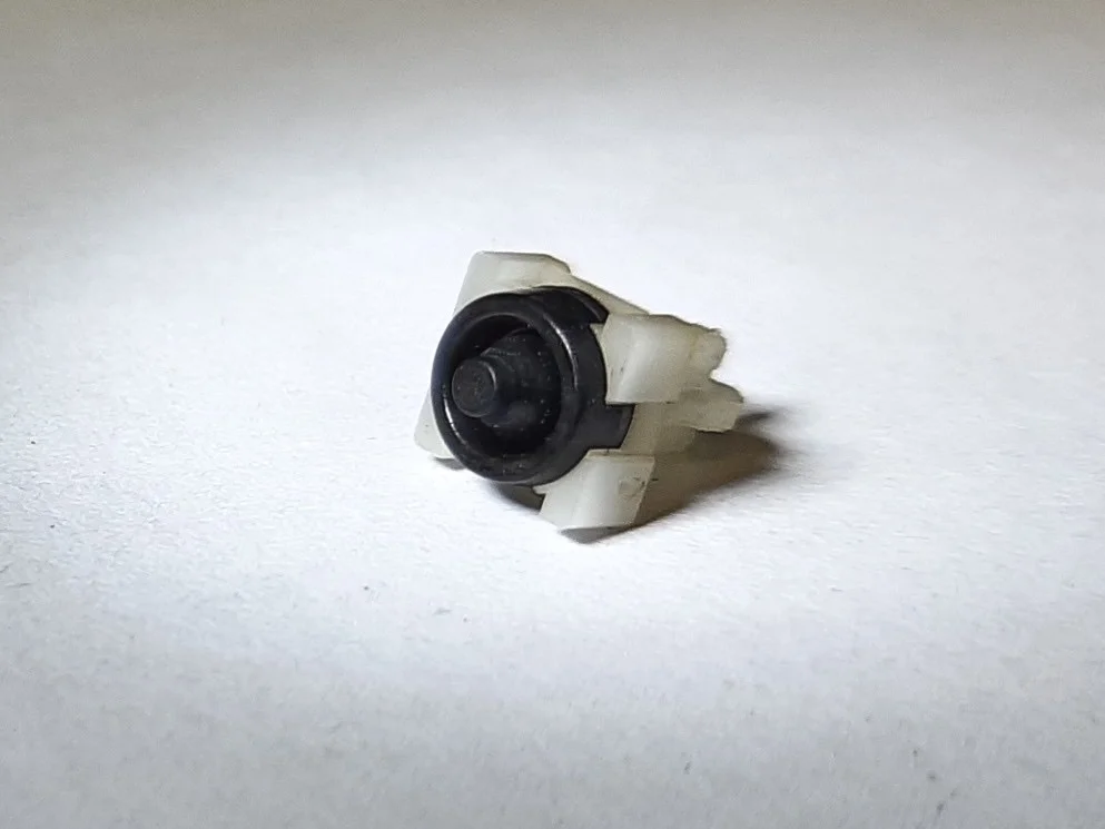 das schwarze Teil ist aus Gummi, das runde Ding in der Mitte (ähnlich einem Klo-Pimpel) sorgt für das "tasten und wieder heraus-springen) der Ring sollte die beiden Kontakte verbinden.