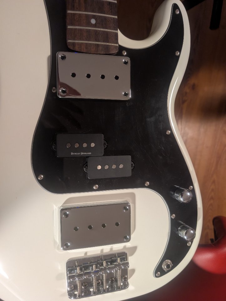 Ausgangsbasis ist ein Squier von 2008 welchen ich gebraucht in quasi Neuzustand gerade gekauft habe und zwei Artec Mudbucker.