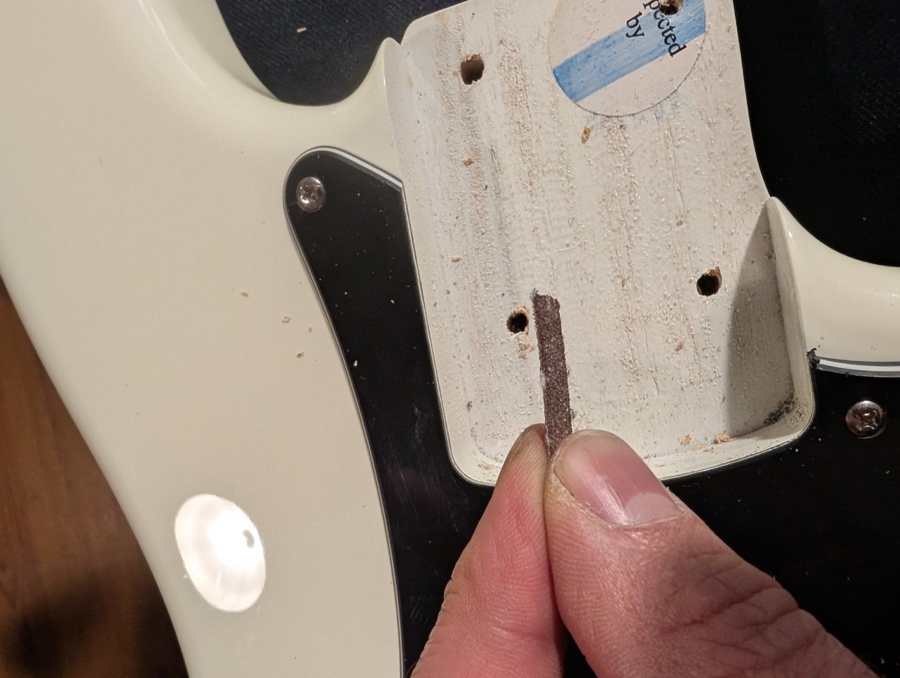 In der Halstasche war ein Stück Schleifpapier. 0,75mm beigelegt.
