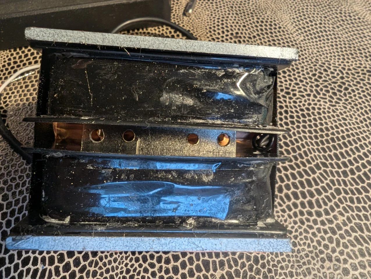 Danke Beate, das könnte ich mal versuchen. Allerdings ist da ja schon ein "Stahlbalken" oder meinst Du dass man den austauschen soll.?Ja, eben. Man kommt an die Anschlußlitzen heran. Meine Wichtigste Modifikation ist übrigens, die Polschrauben durch einen Stahlbalken zu ersetzen.(bzw diesen aus mehreren voneinander isolierten dünneren Blechen aufzubauen) zwischen den Magneten zu ersetzen. Auch wenn das beim Artec weniger bringt als bei den Epiphone-Mudbuckern.