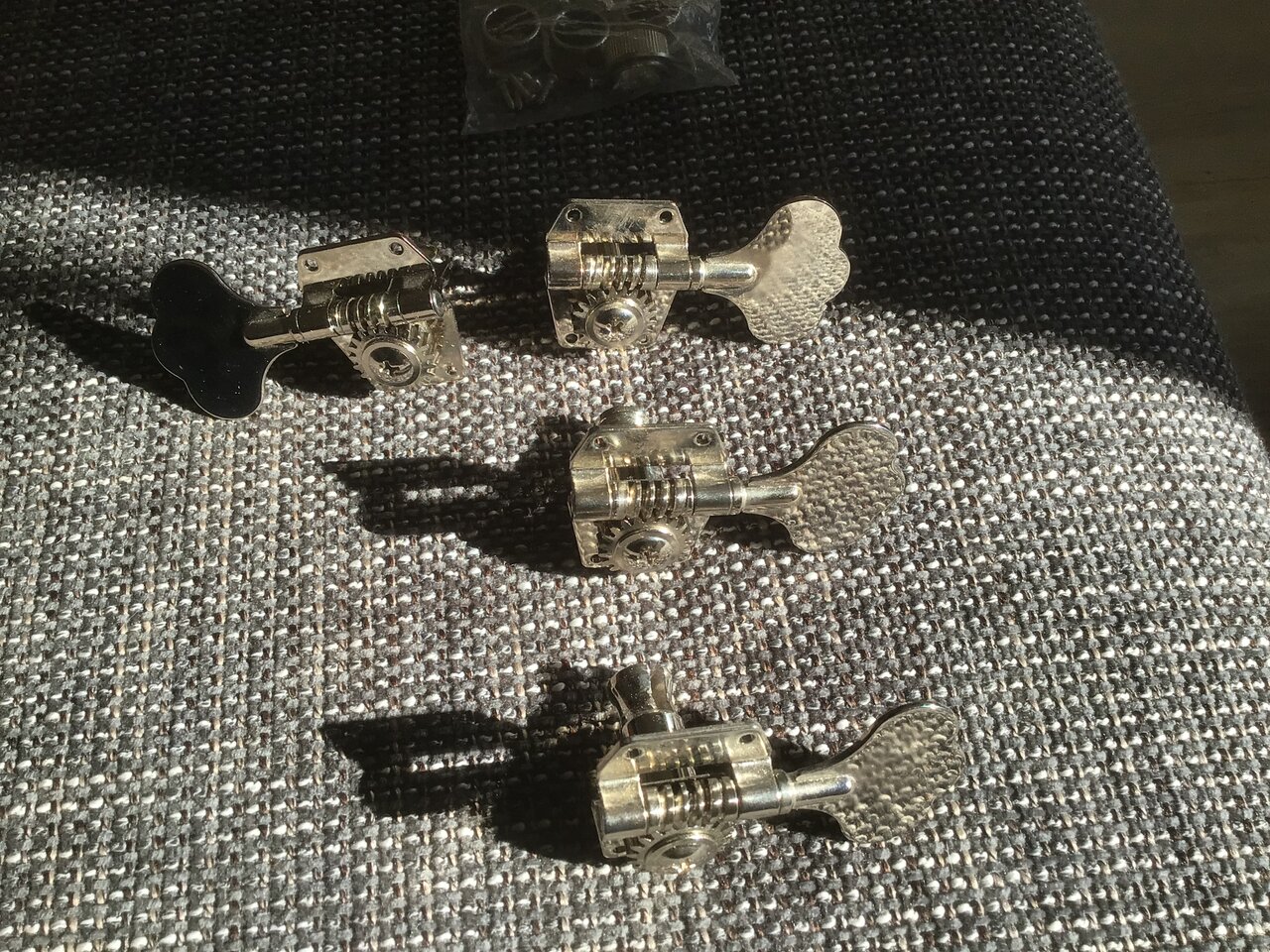 zum Verkauf steht diesmal ein Satz Music Man Style 3+1 Mechaniken von einem MM US-SUB in sehr gutem Zustand. Die Hülsen und die Befestigungsschrauben sind selbstverständlich mit dabei.